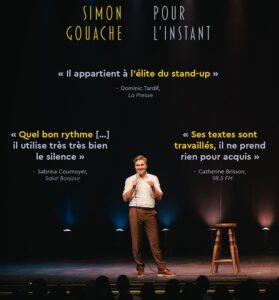 « Je vais faire ça, pour l’instant… » C’est ce que Simon Gouache s’est dit quand il s’est lancé en stand-up, il y a maintenant plus de vingt ans. Visiblement, cet instant dure toujours. De ce qui devait être une courte aventure est née une grande passion, qui est au premier plan de ce quatrième spectacle.